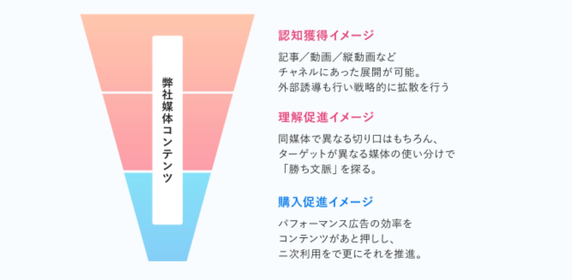 メディアジーンのコンテンツは、認知〜購入促進まで活用可能。