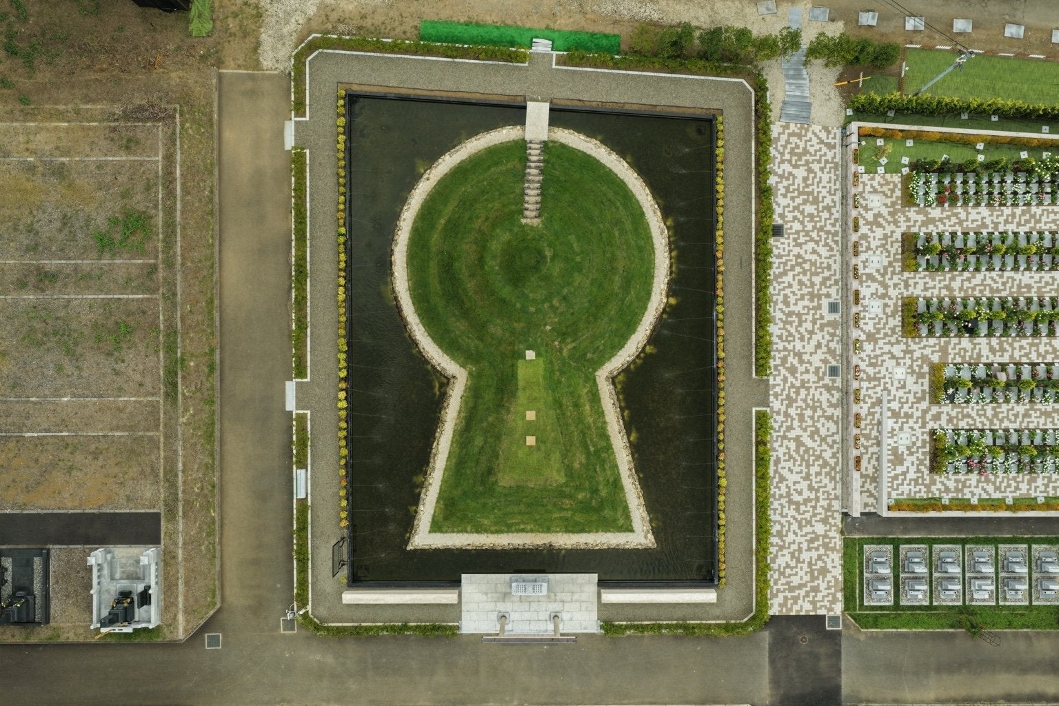 野田ほたるローズガーデン古墳墓は、今年3月にリニューアルオープンした樹木葬霊園内に築造された、当社の第1基目となる古墳墓です。庭園式霊園の中で、水濠に囲まれながら佇む美しいお墓となっています。単なる墓所にとどまらず、日本の古墳文化を現代に伝える象徴的な存在として、地域文化の発信や、野田市の新たな魅力創出にも寄与することが期待されています。