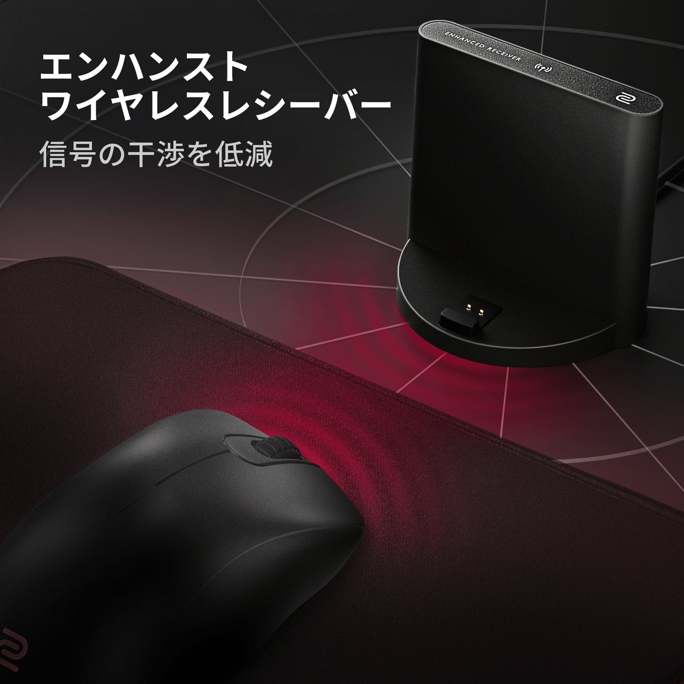 ZOWIE独自の拡張レシーバー「エンハンストワイヤレスレシーバー」の採用により安定した接続を保ちながら、スムーズなゲームプレイを実現します。従来のEC-CWシリーズに対し、本モデルは2000Hz、4000Hz(4K)にも対応。また、充電スタンド兼用のエンハンストワイヤレスレシーバーはマウスを置くだけで簡単に充電ができるほか、LEDインジケーターでバッテリー残量が分かりやすい設計です。