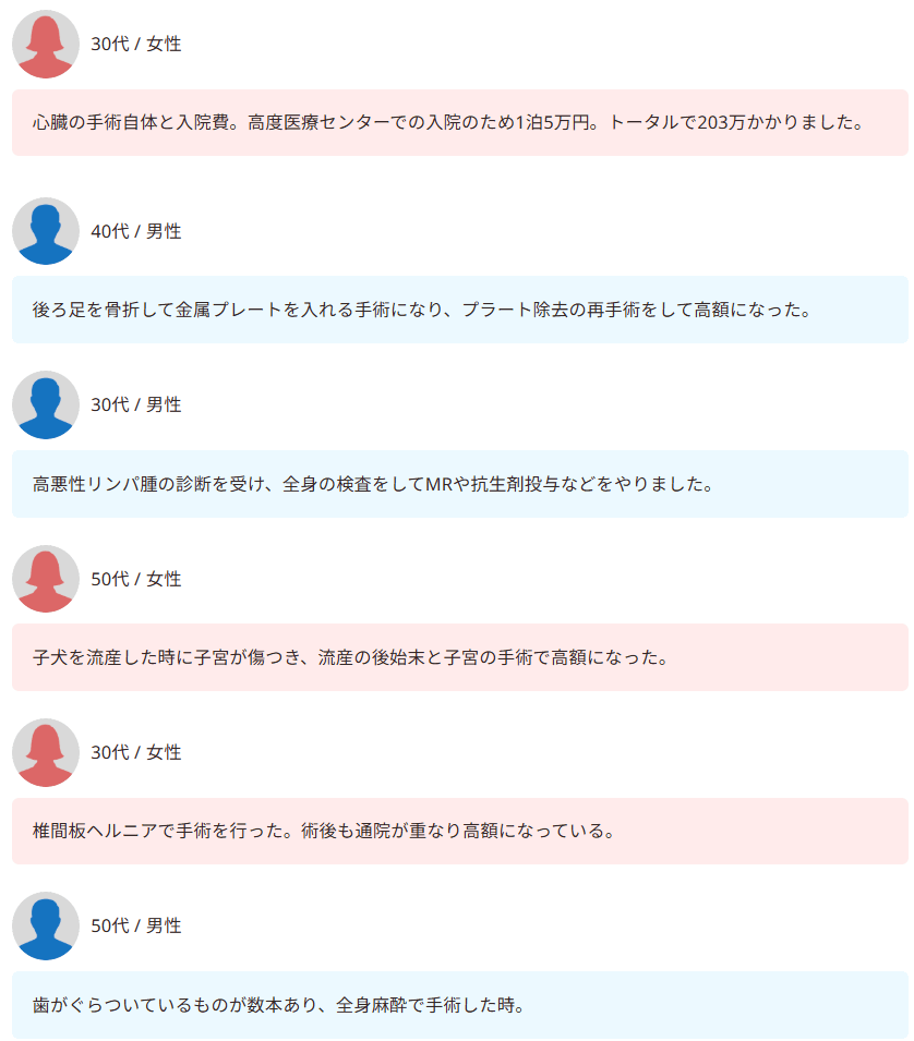 病気の重さによって金額が一気に跳ね上がるこの「振れ幅」こそが、貯金だけで安心できるかを左右する大きな要因と言えそうです。