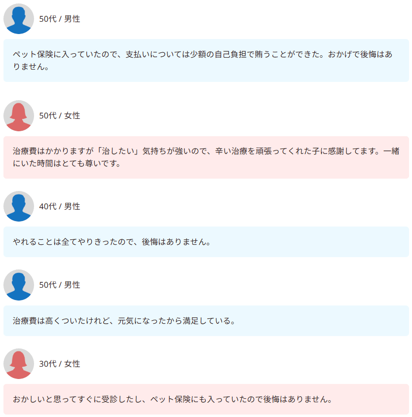 高額になった愛犬の治療費に関するコメント集