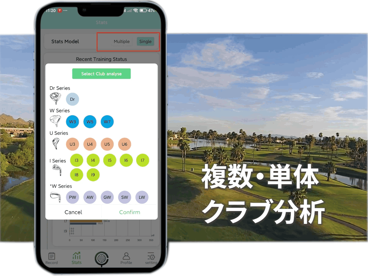 付属のホルダーにスマートフォンを装着し、アプリにログインするだけ。各ショットは、リアルタイムのデータと共に動画で記録できるため、自分のスイングを再生・分析することで、効果的な技術改善が可能になります。