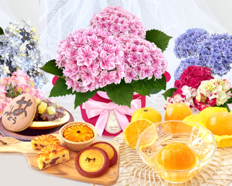 【母の日2026】コンパクトで飾りやすい4号アジサイ5種・3.5号3種を展開、スイーツとセットで母の日ギフトに