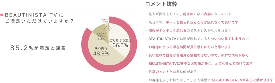 ・8割以上の美容師がBEAUTINISTA TVに満足していると回答
