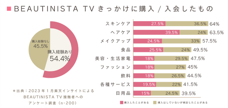 ・5割を超えるお客様がBEAUTINISTA TVをきっかけとした商品の購入・入会経験ありと回答