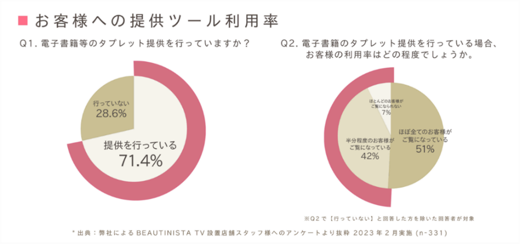 2023年2月にBEAUTINISTA TVの設置ヘアサロンへ向けて実施した本調査では、BEAUTINISTA TV設置ヘアサロンの約7割が電子書籍を導入している結果となりました。
