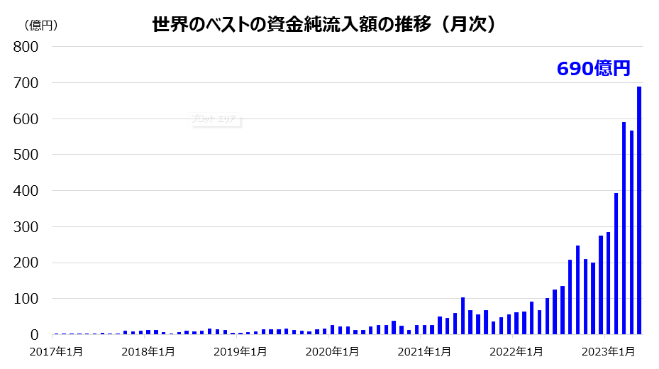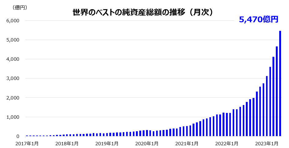 世界のベストが4ファンド合計で5000億円を突破。5月で77カ月連続での純資金流入を記録