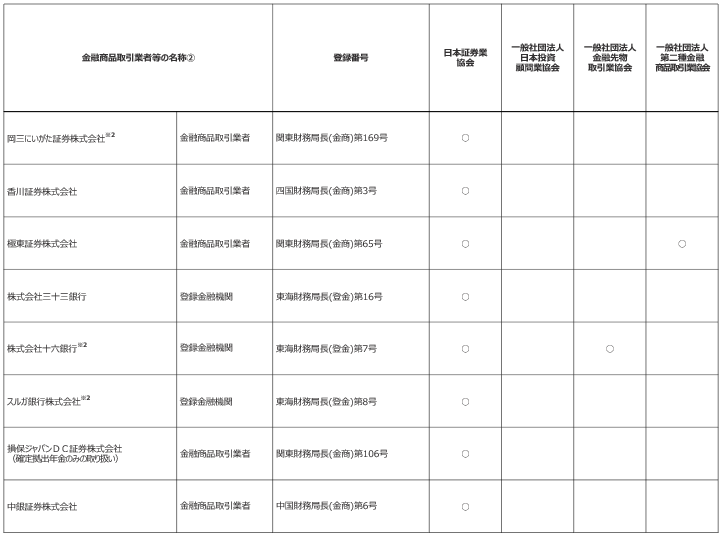 上記販売会社リストは、世界のベスト、すなわち、「インベスコ 世界厳選株式オープン<為替ヘッジあり>(毎月決算型)/<為替ヘッジなし>(毎月決算型)」および「インベスコ 世界厳選株式オープン<為替ヘッジあり>(年1回決算型)/<為替ヘッジなし>(年1回決算型)」を採用している販売会社リストであり、ファンドごとによって実際の販売会社は異なります。ファンドごとの販売会社情報など、ファンドの詳細につきましては、ホームページをご覧ください。