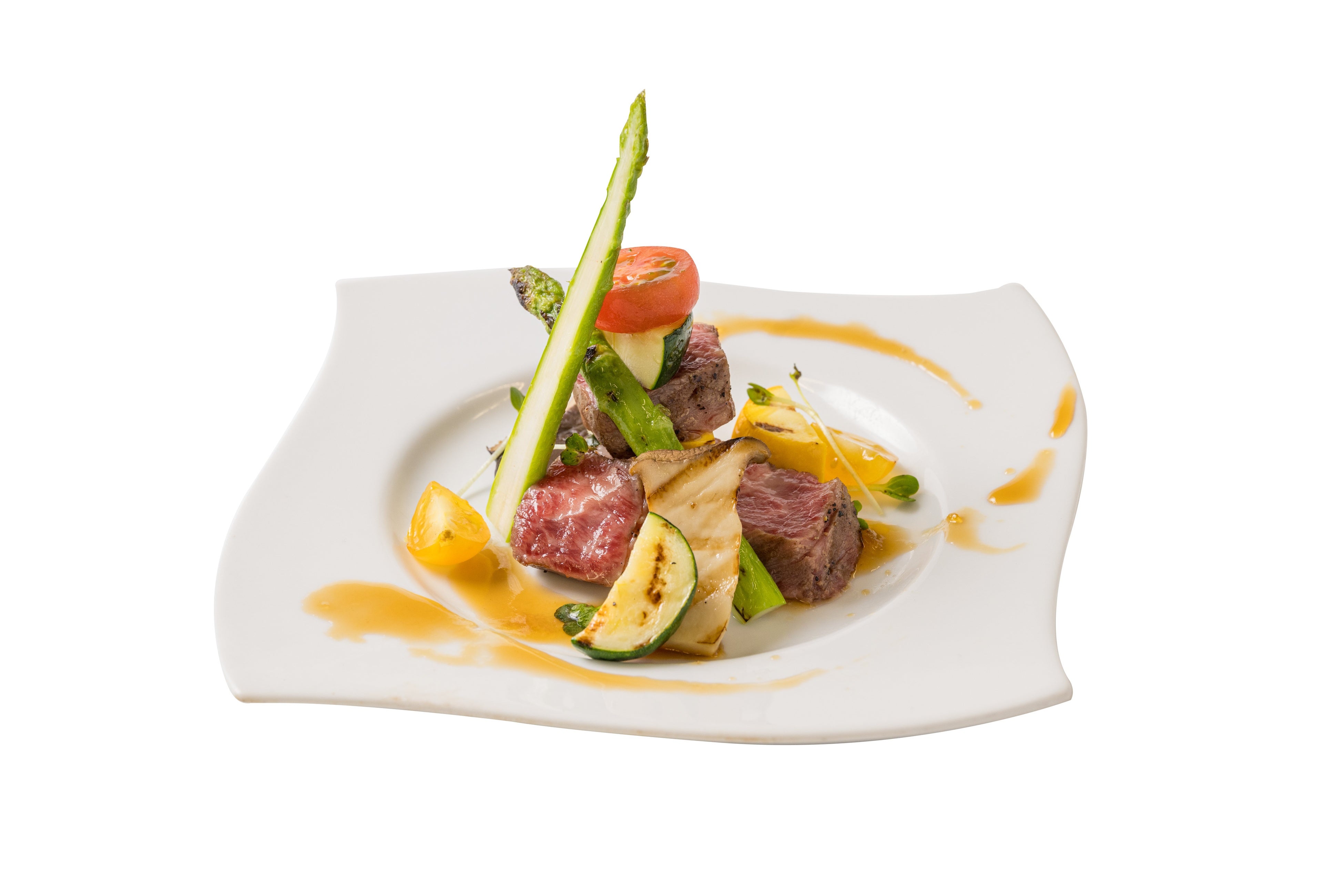 「茨城県産常陸牛と旬の野菜のオレンジとオランジュソース仕立て」