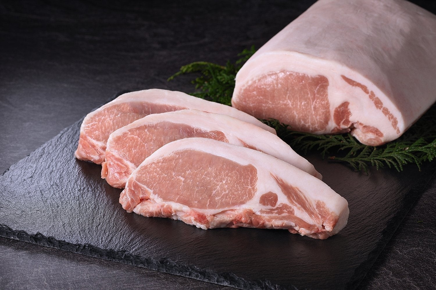 茨城県銘柄豚肉「常陸の輝き」は、茨城県が7年の歳月をかけて開発したデュロック種の系統豚「ローズD-1」を交配した三元豚です。