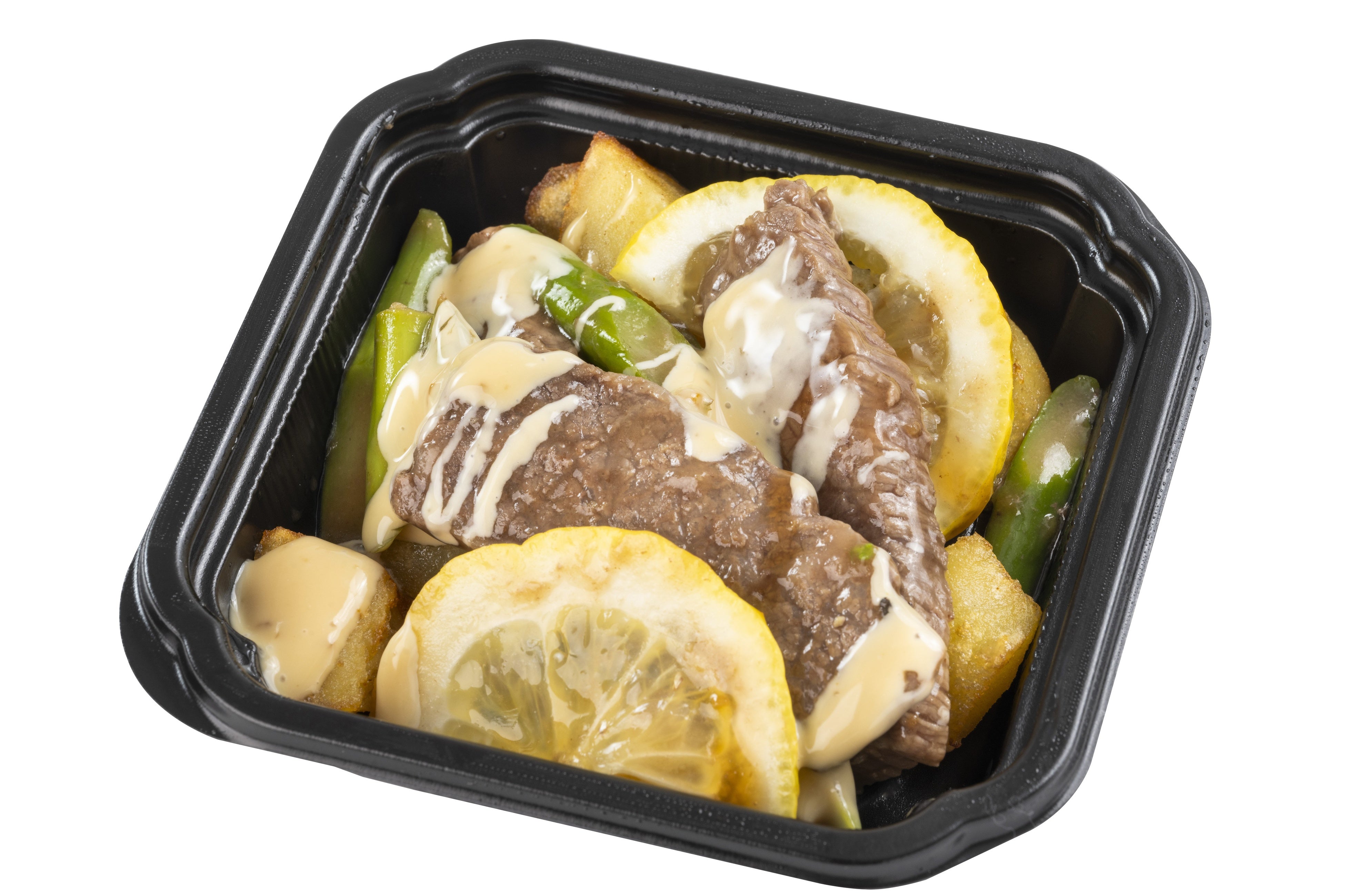 食べやすい大きさの牛肉と旬の野菜をソテー。オレンジ風味の爽やかなソースが肉のコクを包み込み、メインのおかずに最適!