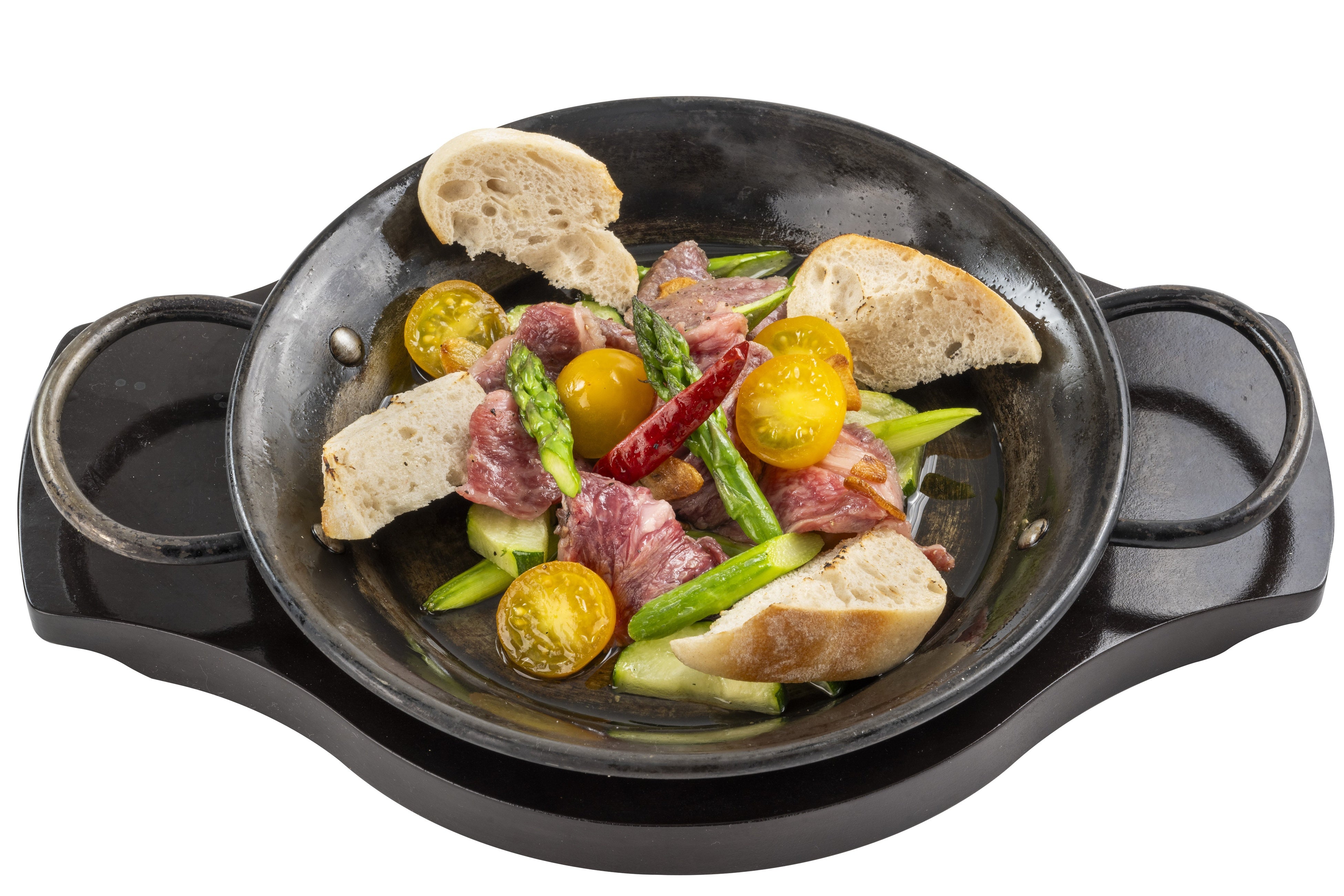「常陸牛サーロインと夏野菜のアヒージョ」