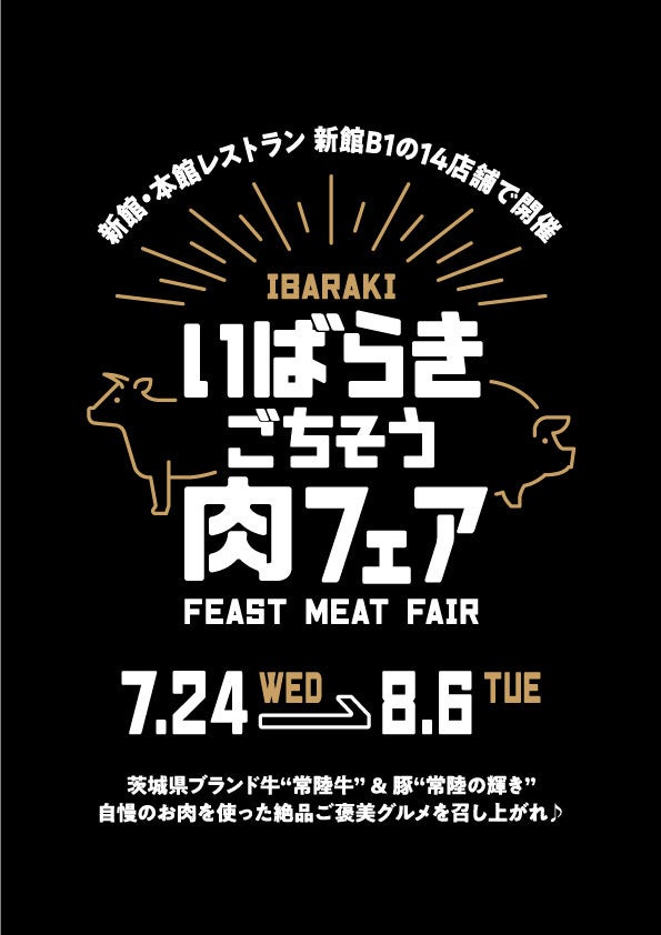 茨城県は7月24日(水)〜8月6日(火)までの間、日本橋髙島屋新館・本館レストラン14店舗で、ブランド牛「常陸牛」&ブランド豚「常陸の輝き」を使用した「いばらきごちそう肉フェア」を開催します!