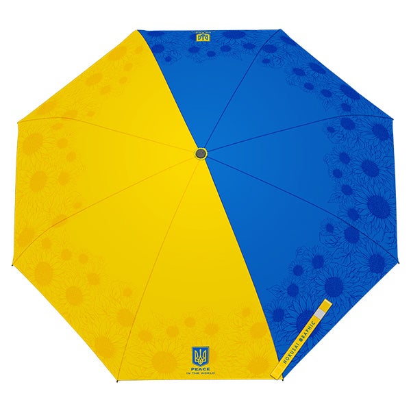 世界の平和を祈念し、ウクライナの国花である向日葵(ひまわり)をデザインに落とし込んだ折りたたみ傘です。独立のシンボルとされるウクライナの国旗は、青黄旗(せいこうき)、黄青旗(こうせいき)とも呼ばれる青と黄の二色旗。青は空を、黄は大地を黄色に染める小麦を現しており、ウクライナは「欧州のパンかご」と称されるほどに実り豊かな国です。ウクライナの人々に再び平穏が訪れる、支援の一助となることを願います。