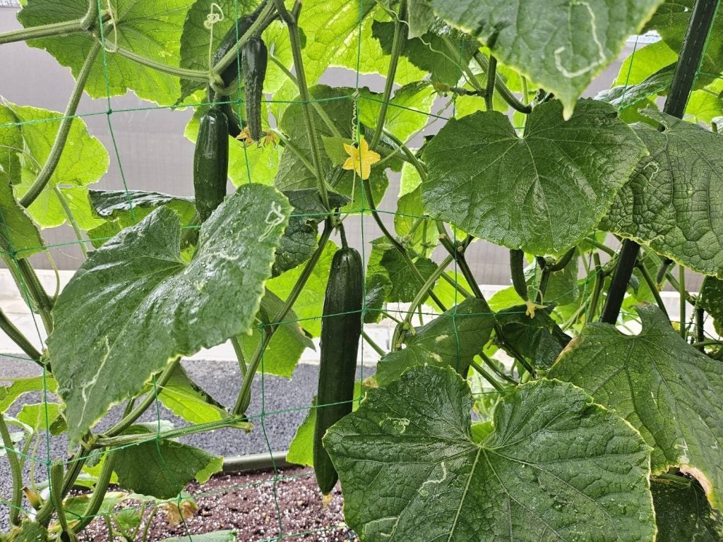 きゅうりを育てる活動では、カラスに実を食べられてしまうなどのハプニングもありましたが、想像以上に収穫できた年もあり、社員同士の会話や交流のきっかけとなりました。