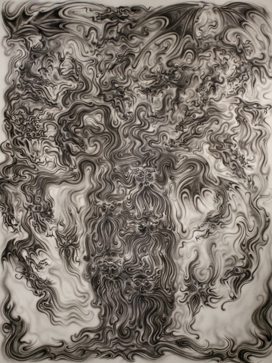 龍やペガサスといった神話的なモチーフを通し、人々の集合的な記憶や内なる神話といった精神世界を現代の感性で描き出す。