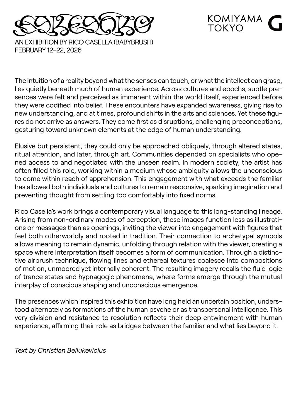 RICO CASELLA (BABYBRUSH) 個展「EGREGORO」開催のお知らせ/会場:KOMIYAMA TOKYO G