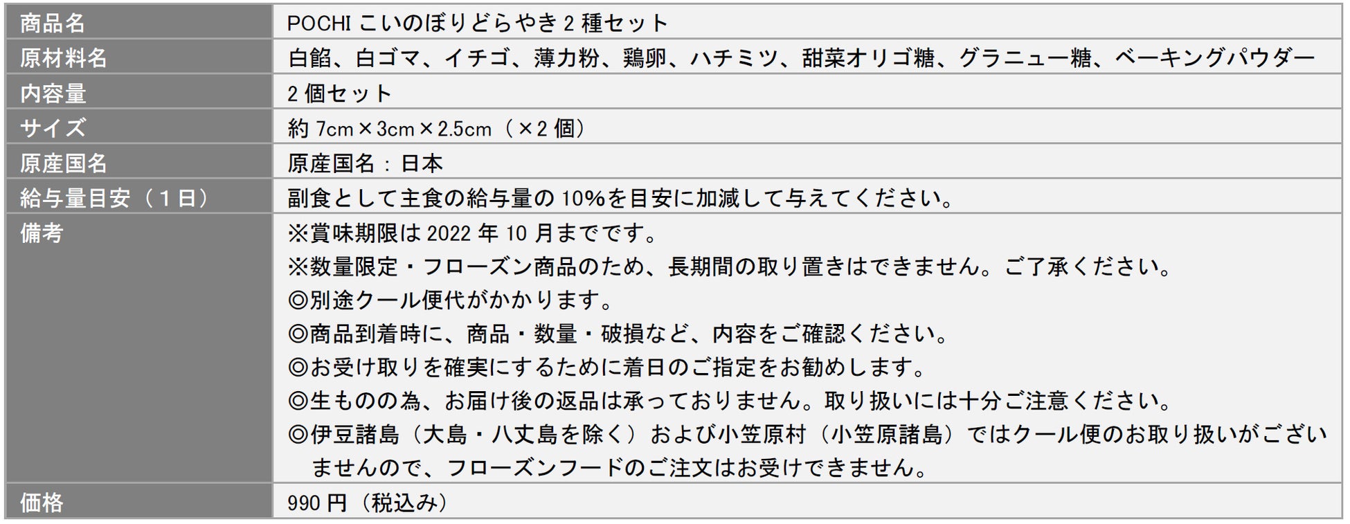 プレミアムドッグフード専門店・通販「ポチの幸せ(POCHI)」(運営:マーケティングパートナー株式会社、本社所在地:東京都新宿区、代表取締役社長:権田真司、Tel:03-6772-8194)は、こどもの日のお祝いに使える季節限定・数量限定の犬用オヤツ「こいのぼりどらやき2種セット」を4月15日より販売開始しました。