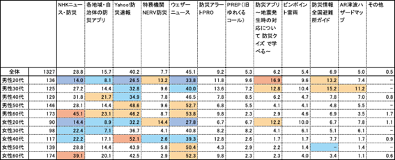 年代別でみると、昨年同様、男女ともに50~60代と年代が上の世代の方がインストール率は高い傾向に。若い世代はスマホでの情報収集にSNSを利用するなど、普段から能動的に使っている人が多いため、わざわざ防災用のアプリを入れる必要性を感じていない可能性が高そうです。反対に高齢者はGoogleやYahoo!といった検索エンジンでの検索をする方が多く、災害に関しては受動的に知ることができる専用アプリが好まれているのかも知れません。