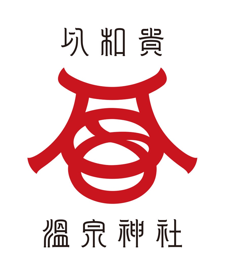新しいシンボルマークは、神社の鳥居の中に「ゆ」(湯)の文字が横になっており、神社の居心地の良さに「ゆ」も寝転ぶ様子と温泉の湯気が立ち上る様子を表しています。心の拠り所である神社に日本人が古来より親しんできた温泉があるという、全国でも数少ない神社であることを、誰が見ても一目で分かり、かつどこか懐かしい昔ながらの温泉街を感じるようなデザインとしました。またロゴタイプは、いわき市有形文化財である本殿の扁額(へんがく/1719年)の書体より着想を得ており、歴史を大切に重んじ、後世に残し伝えていきたい想いを込めています。この新しいロゴマークは今後、のぼり旗・提灯・御守り・授与品袋・御朱印等に使用し、温泉神社の神紋である左三つ巴と共に温泉神社を知ってもらう新たなコミュニケーションツールとなります。