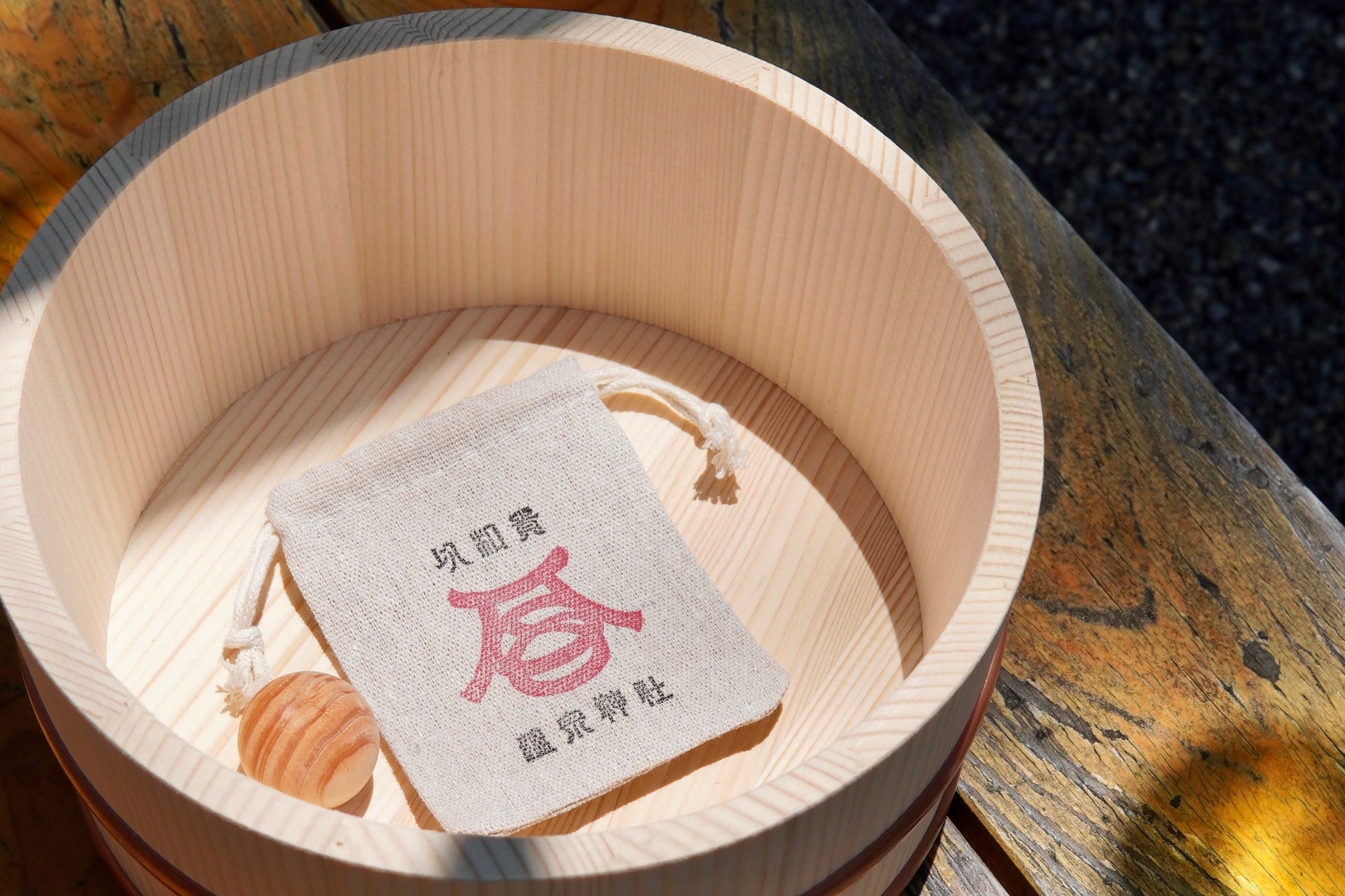 また「癒しの湯浴み祈願」は、境内にある神の御湯「神籬(ひもろぎ)の湯」より湧き出る温泉を湯桶に汲み入れ、願い事を込めた檜の「願い玉」を湯の中に入れ、檜の清々しい香りを感じながら手足を温泉で温めて清らかな体と心で神様と向き合い、温泉のありがたみと癒しを感じるという体験型のお参りです。開運湧福と美肌の湯で知られる「いわき湯本温泉」の効能のご利益を頂けます。なお「願い玉」は巾着袋に入れて体験終了後にお持ち帰りいただけます。(所要時間:約15分 初穂料:500円 祈願済み湯桶と足拭きタオルは貸し出し)
