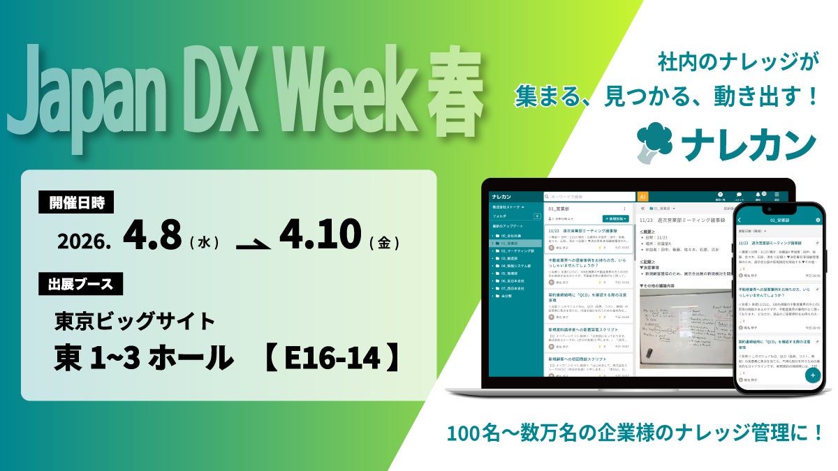 ナレッジ管理ツール『ナレカン』、東京ビッグサイトで開催「Japan IT Week 春」に出展