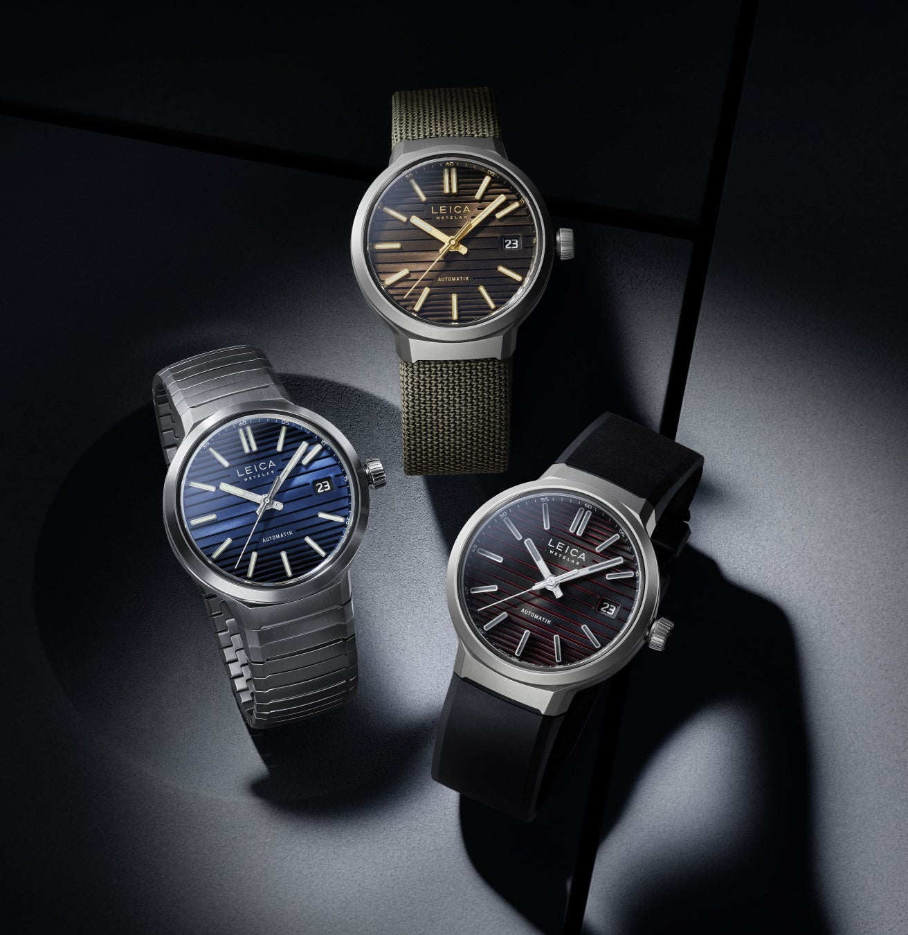 「ライカZM 11」は、タイムレスなデザインと精緻なクラフツマンシップ、そして光と影が奥行きを生み出し、角度によって表情を 変える文字盤が特徴的なモデルです。「ライカM6」などで採用されている赤いドットのレンズ着脱ボタンを彷彿とさせる、ライカ 独自のストラップ交換システムに加え、正確且つデザインの美しさを兼ね備えた高精度な自動巻きムーブメントを備えています。一秒ごとに新たな表情を見せる「ライカZM 11」コレクションは、ブラックとレッドの文字盤を備えた限定モデル「ライカZM 11 Launch Edition」、温かみのあるブラックの文字盤を備えた「ライカZM 11 Coffee Black」、ブルーとブラックの文字盤を備えた「ライカZM 11 Midnight Blue」の3つの個性溢れるタイムピースで、チタン、ラバー、コーデュラファブリックの3種類のバンドからお選びいただけます。