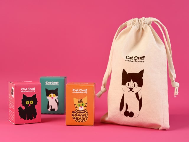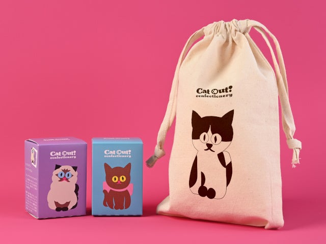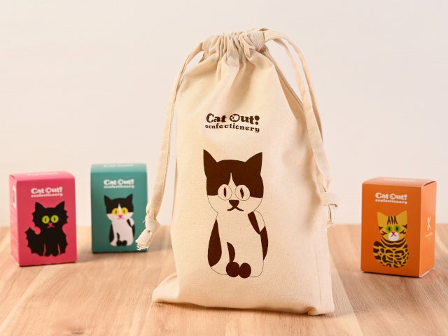 また、2月15日から新グッズ「Cat Out!巾着」も新登場! 2月22日の猫の日の贈り物や、猫好きさんへおすすめしたい一品です。