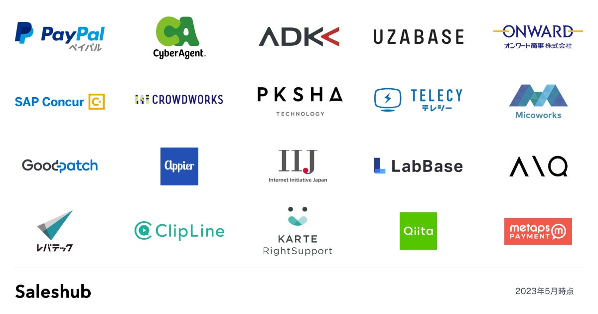 Saleshubは国内の急成長スタートアップから大手上場企業まで、国外の幅広い業界で新規開拓営業の新たな手法のひとつとして選ばれています。