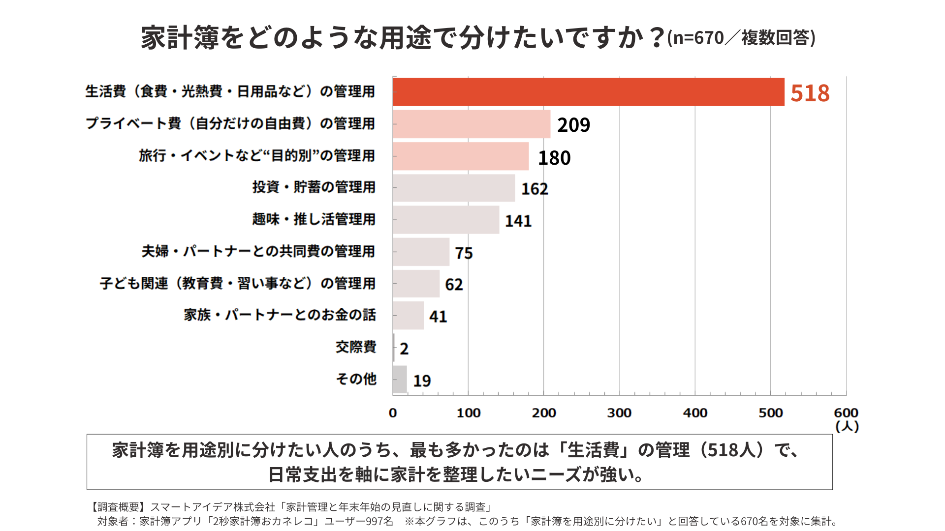 1位:生活費(食費・光熱費・日用品など)の管理用(518名)