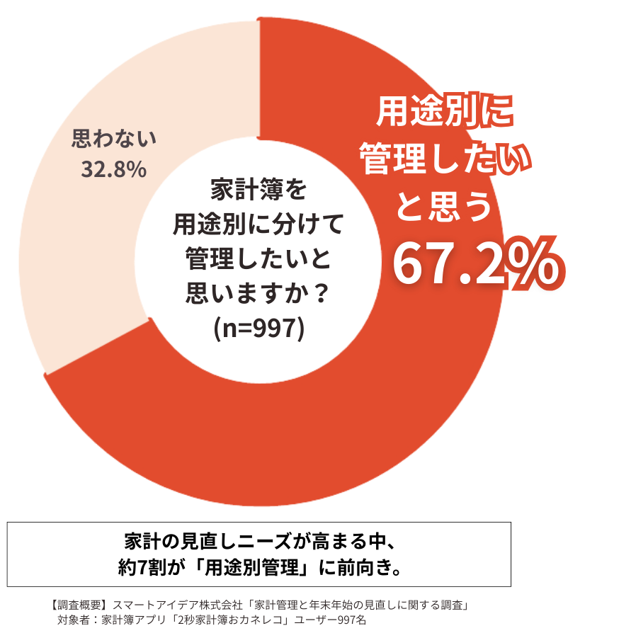 約7割が「家計簿を用途別に分けて管理したい」と回答しました。