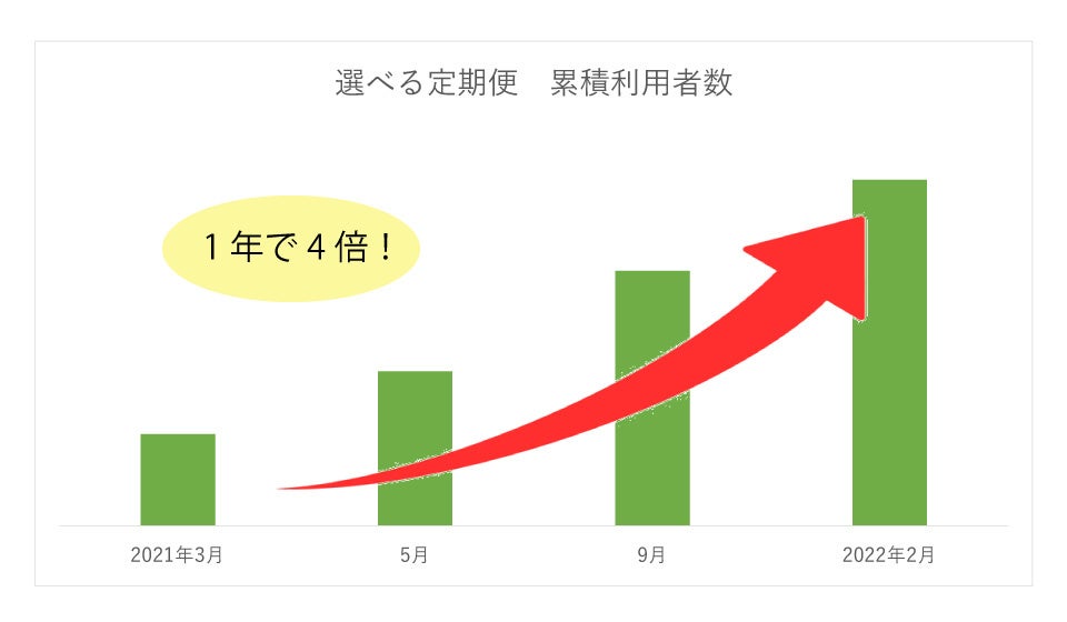 パンドの「選べる定期便」は、通常購入よりもお得に購入できるほか、毎月パンやスープを自由に選べる楽しさがご好評で、サービス開始より現在までに多くのお客様にご利用いただき、このたび利用会員数が4倍以上となりました。