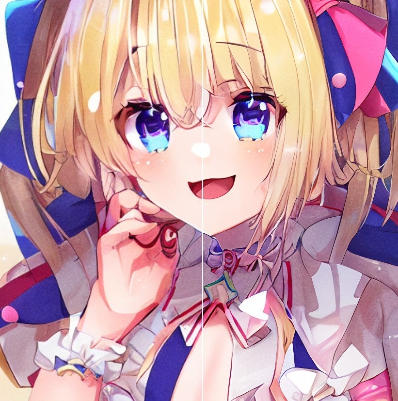 (左半分がアップスケーリング前、右半分がアップスケーリング後)