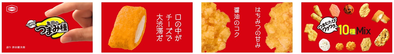津田さんを起用した新CMのテーマは「多種多彩、つまむたびワクワク。」です。そのテーマのもと制作された新CM『亀田のつまみ種 つまむたびワクワク篇』 『午後のつまみ種 つまむたびワクワク篇』 は、9月9日(月)より全国で順次放送開始いたします。新CMは『亀田のつまみ種』を一粒ずつ超接写で撮影し、インパクトのある“おいしさ”を表現しています。さらに津田健次郎さんの“声”で語られるユニークなコメントや、サクッ!カリッ!ザクザクといった聴覚を刺激する効果音など、目でも耳でも楽しめる『亀田のつまみ種』の“多種多彩”な魅力が詰まった内容となっています。