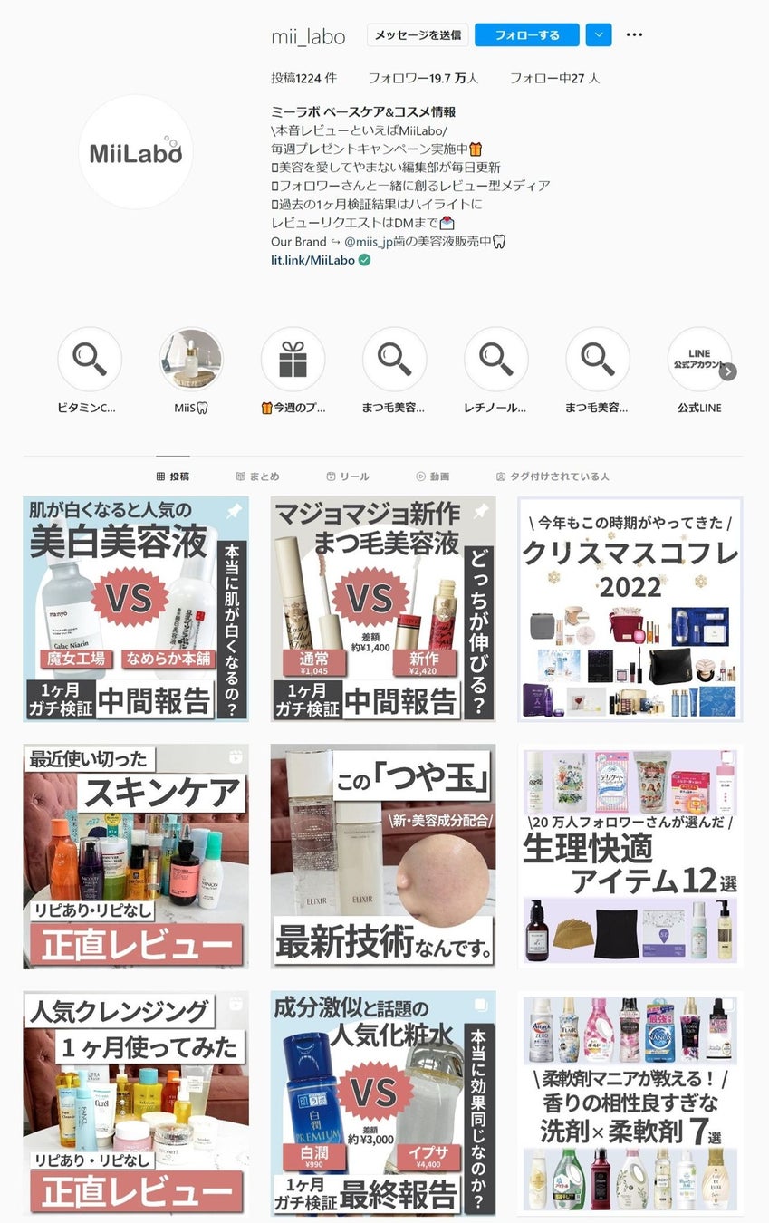 STEP1 「MiiLabo」Instagram(フォロワー:19.7万人※2022年9月時点)のストーリーズより商品紹介