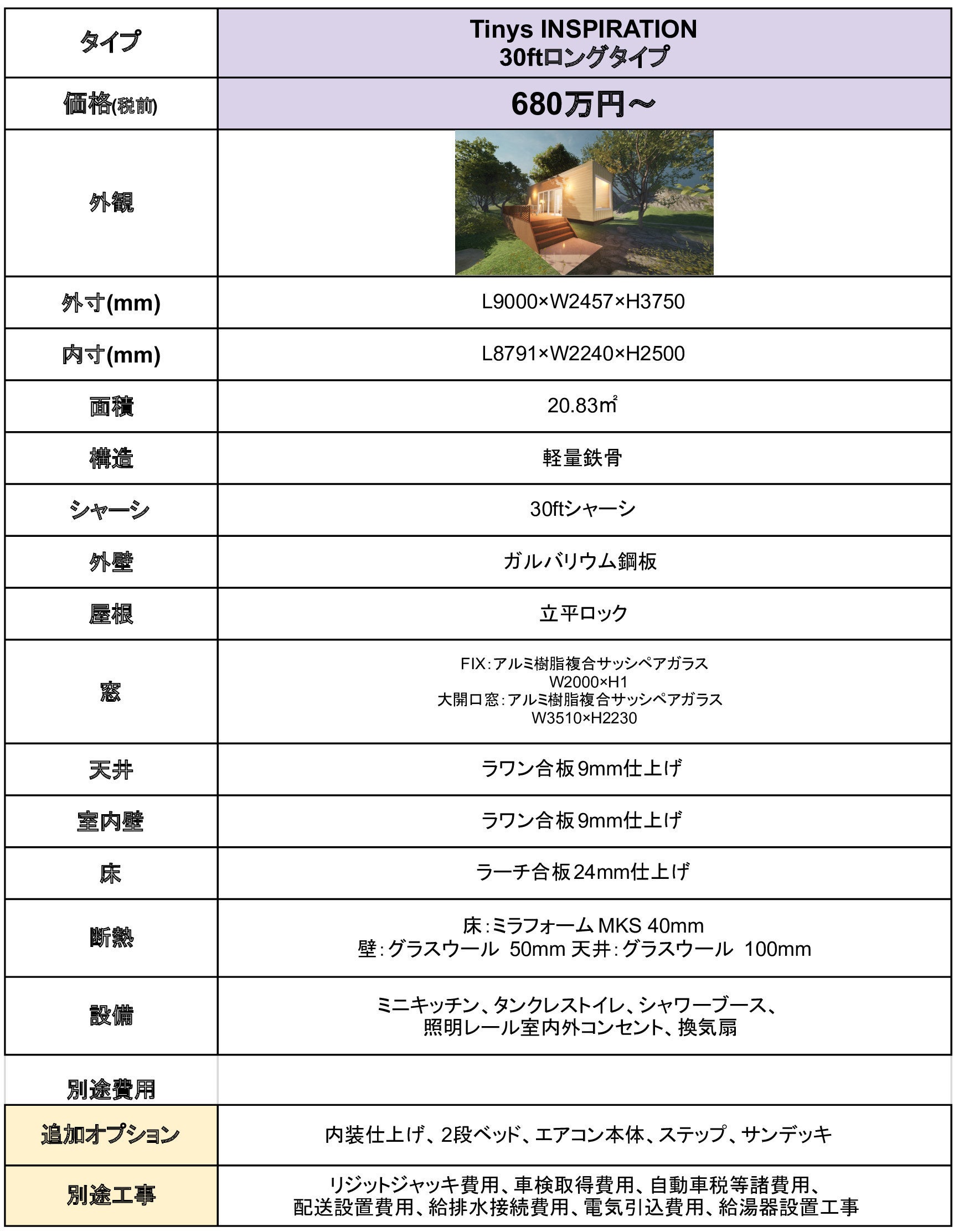 Tinys INSPIRATION 30ftロングタイプ 680万円〜