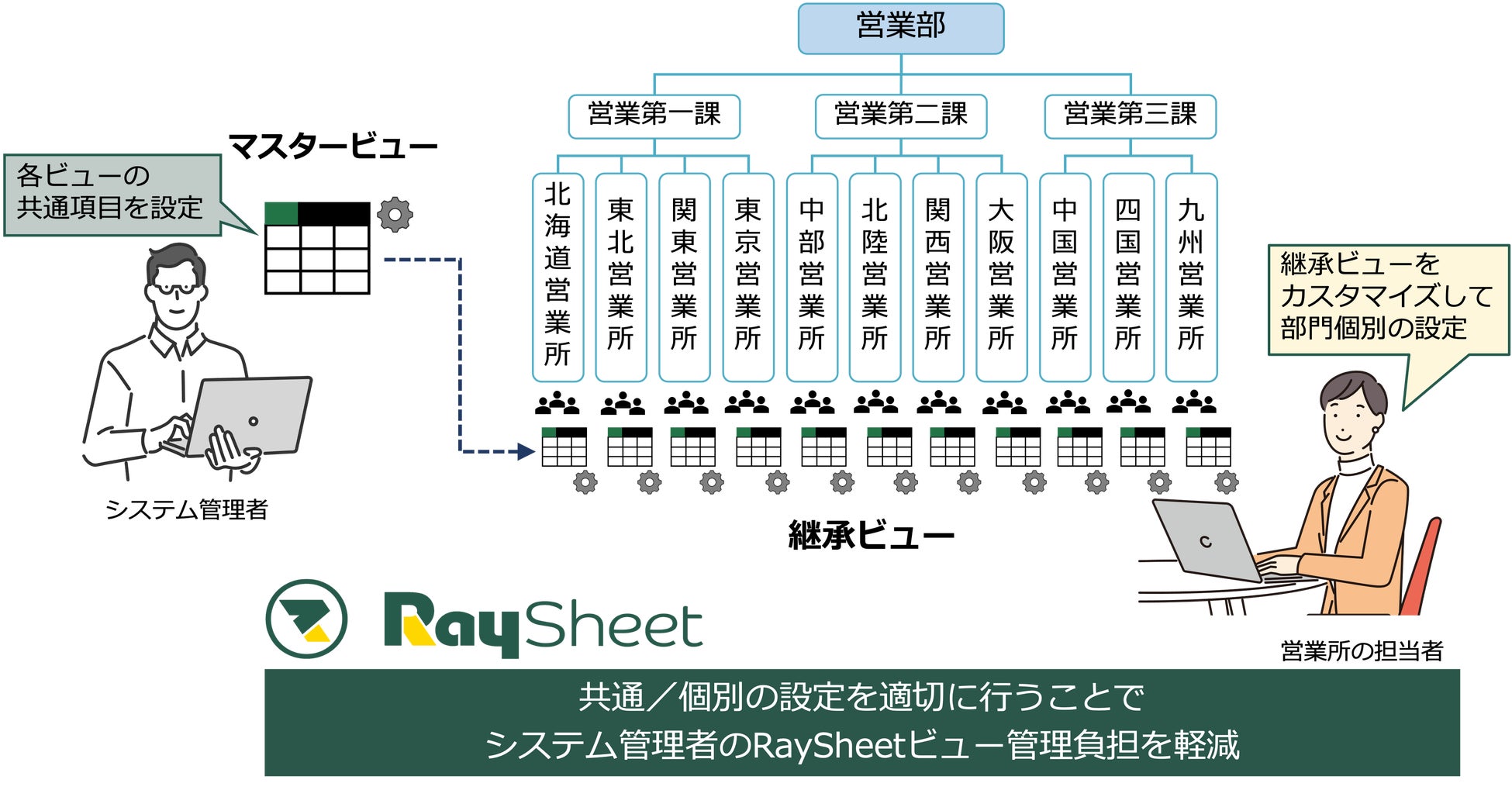 今回のアップデートでは、RaySheetで作成する画面(ビュー)をマスタービューとして設定することでテンプレートのように利用し、ビューの作成時間を大幅に短縮できるようになったほか、共有されたビューを自分の使いやすいようにカスタマイズする機能が追加されました。