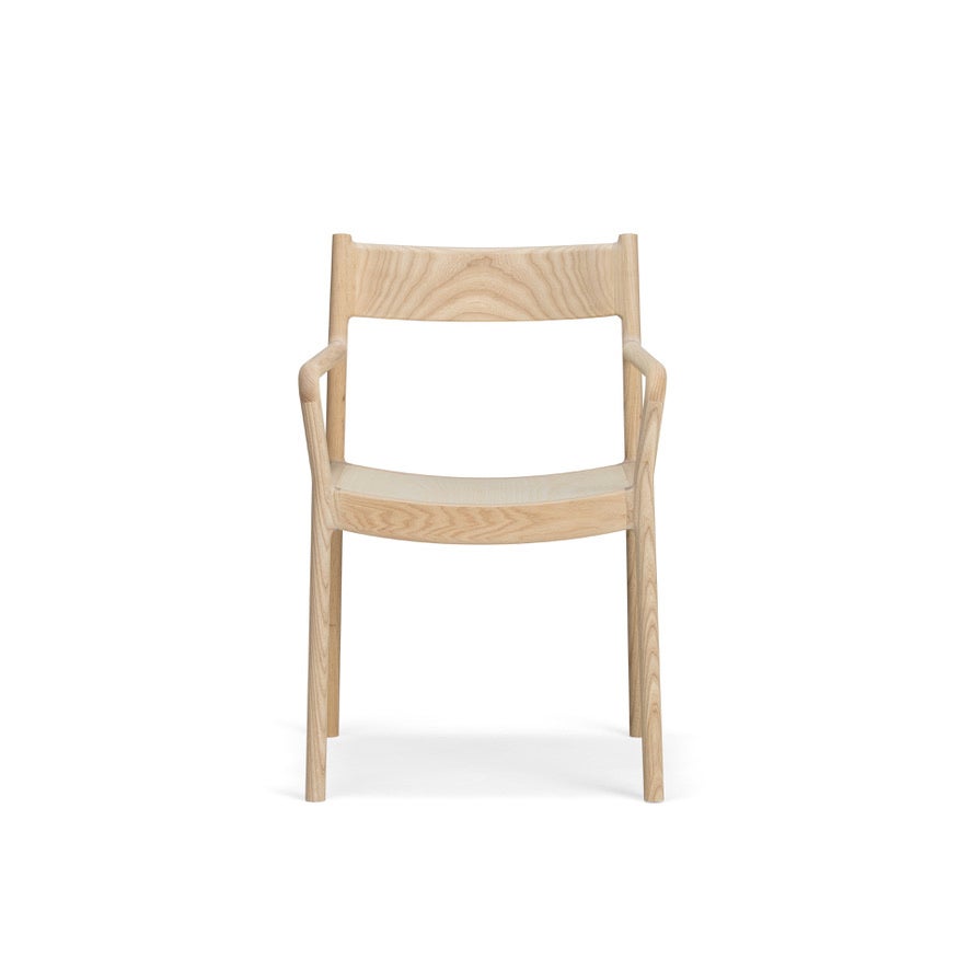 コレクションの種類は、テーブル、チェア、ソファー、スツールなどの18種類があり、素材は環境に配慮した、水性塗料仕上げのアッシュの無垢材、綿の帆布生地、クヴァドラ社の無着色のウール、天然なめし革はソーレンセン社のレザーといった化学物質を使わないものが厳選されています。