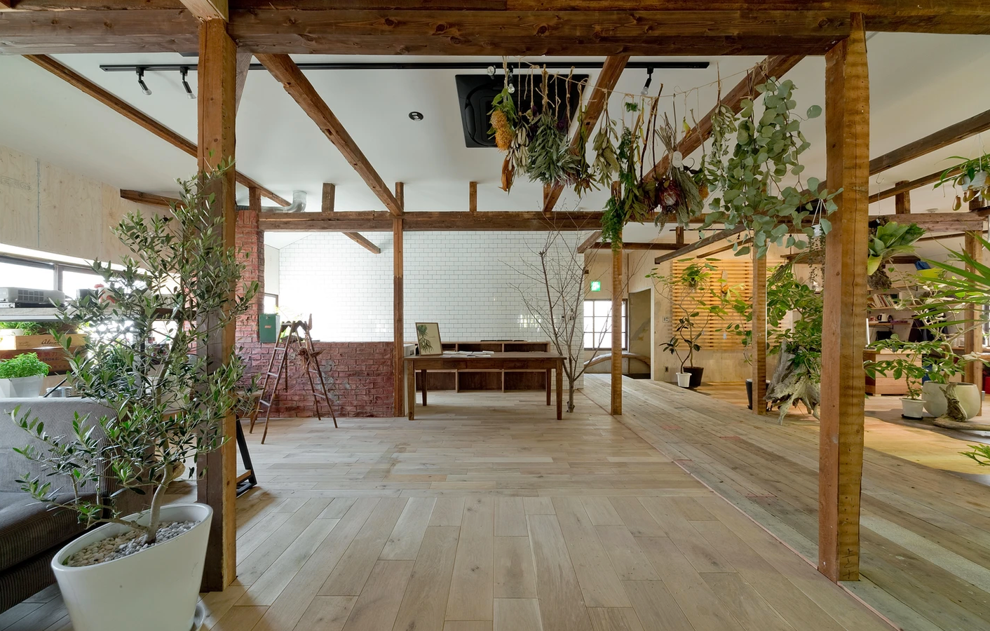 築70年の集合住宅を自社でリノベーションした空間で、フロアは1階と2階に分かれており、さらに2階はメインフロアとサブフロア、1階はメインフロア、宿泊フロア、テラスに分かれています。