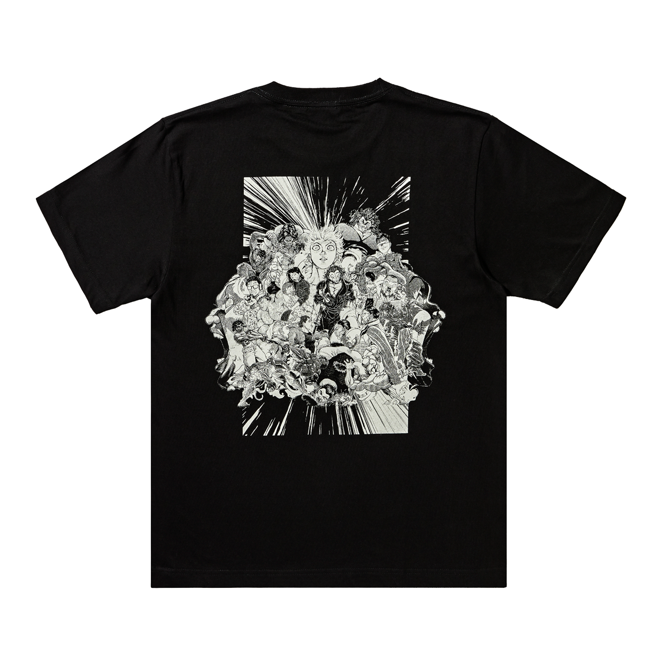 刃牙シリーズ連載30周年を記念し、全1248話の中から最強のシーンを決める投票選で使用されたキービジュアルのデザインをバックに配置しました。刃牙に登場するさまざまなキャラクターが集結したデザインは、板垣先生の綿密な書き込みが最大限活きるように配置し、ファンもテンションが上がるオリジナルのTシャツに仕上げました。