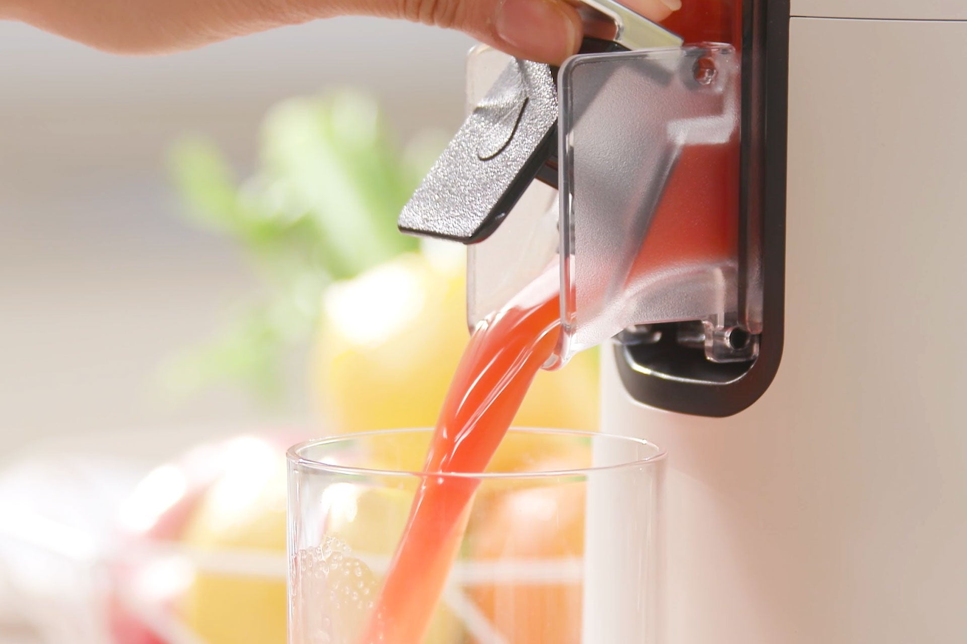 食材にかかる熱を最小限に抑え、ゆっくりと圧縮(プレス)することで、野菜や果物の栄養素を損なうことなく搾汁します。食材そのものの美味しさを最大限に引き出したサラサラとのど越しの良い、健康ジュースが簡単に作れます。