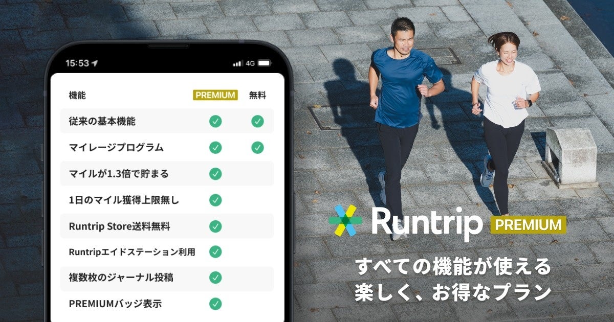 専用アプリ「Runtrip」を活用して運動を計測することで、運動の距離に応じたポイントを付与します。ポイントを貯めればランニングシューズやアパレルなど、運動に必要なアイテムをおトクに購入することができます。MOVEWELL利用者は、月額380円の「Runtrip PREMIUM」が無料になり、ポイントの付与率が向上します。