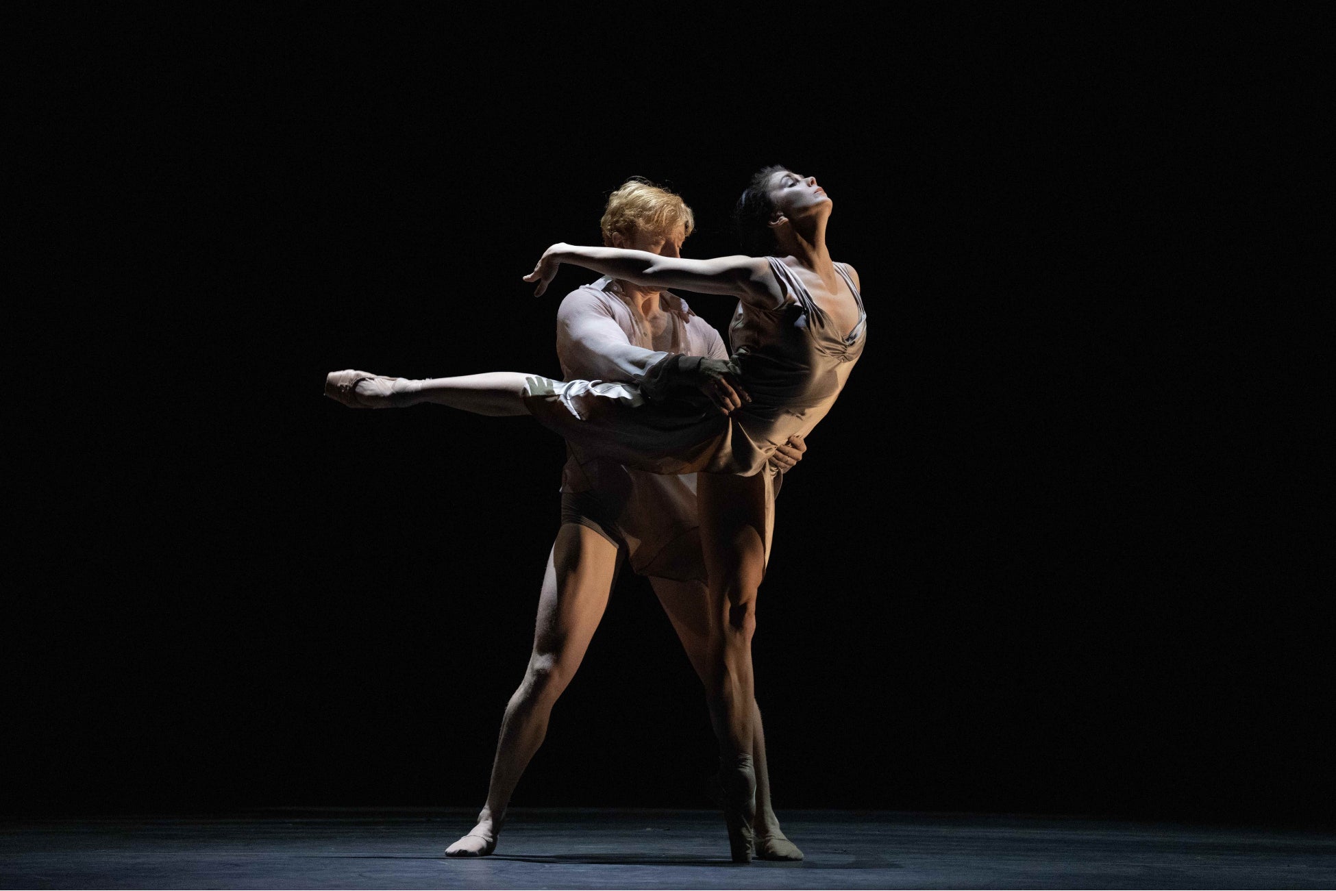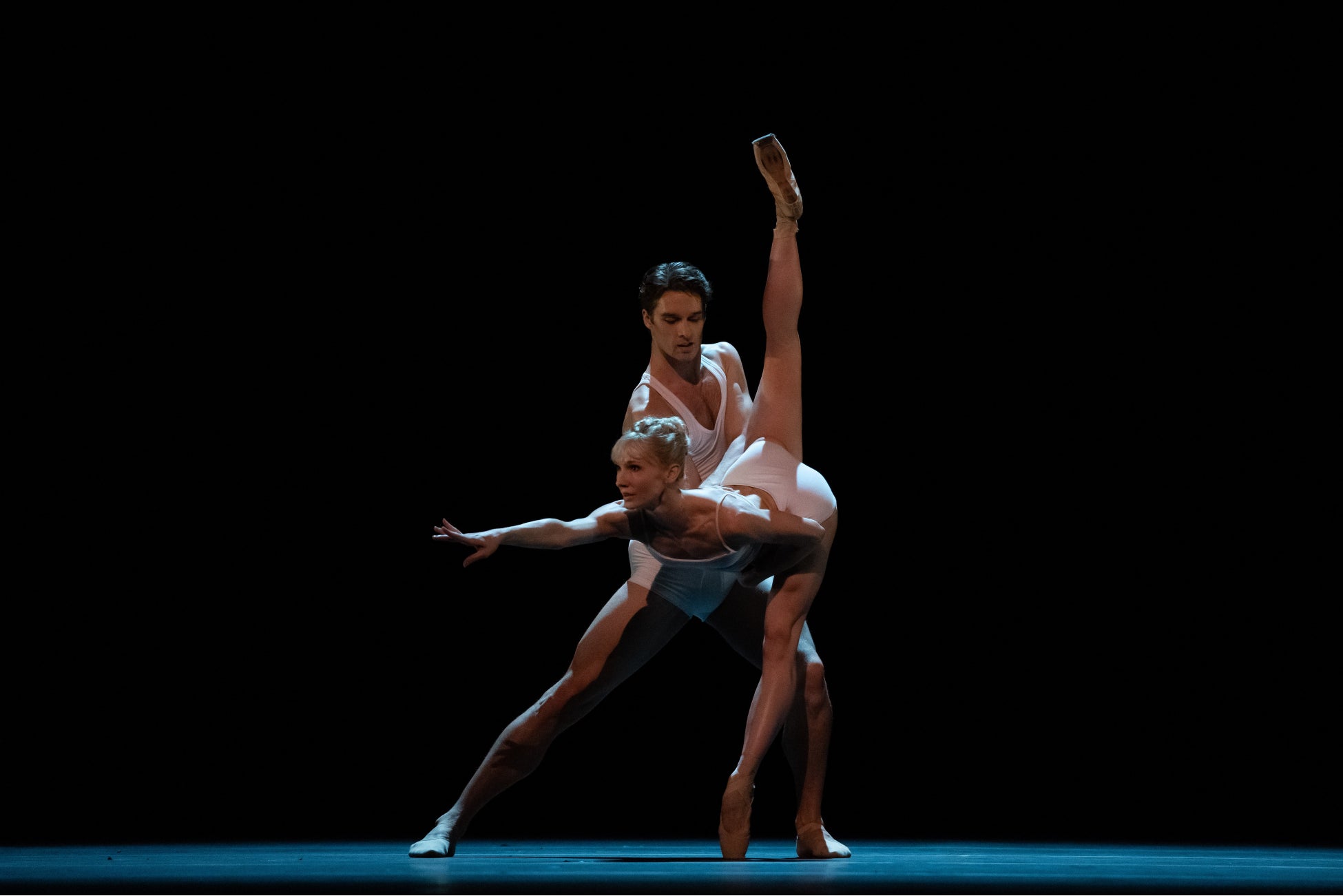 ナタリア・オシポワとスティーヴン・マックレーは、70年代に一世を風靡したフレンチポップスの名曲に乗せた、ブノワ・スワン・プフェール振付『コンチェルト・プール・ドゥ-ふたりの天使』を世界初演。止まることのない技巧を駆使しながらも情感豊かに踊り、高度な身体表現で男女の濃密なドラマに酔わせてくれる。