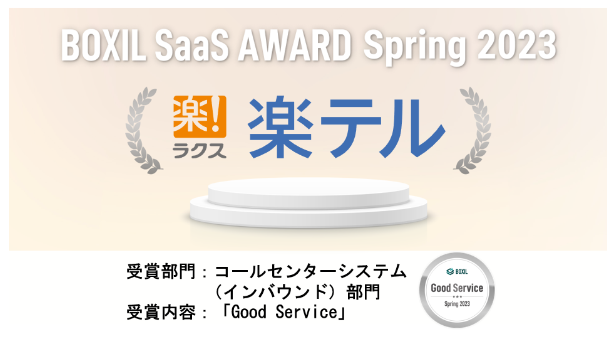 ラクスのコールセンター向けCRMシステム「楽テル」が『BOXIL SaaS AWARD Spring 2023』のコールセンターシステム(インバウンド)部門「Good Service」を受賞