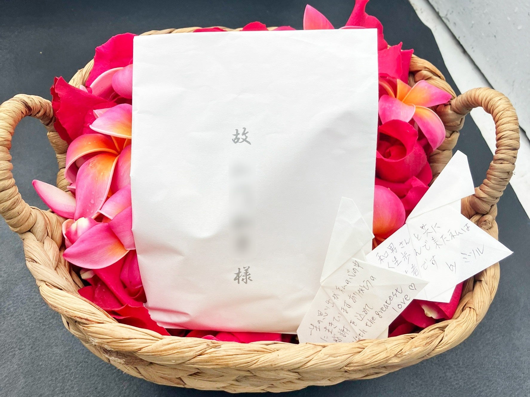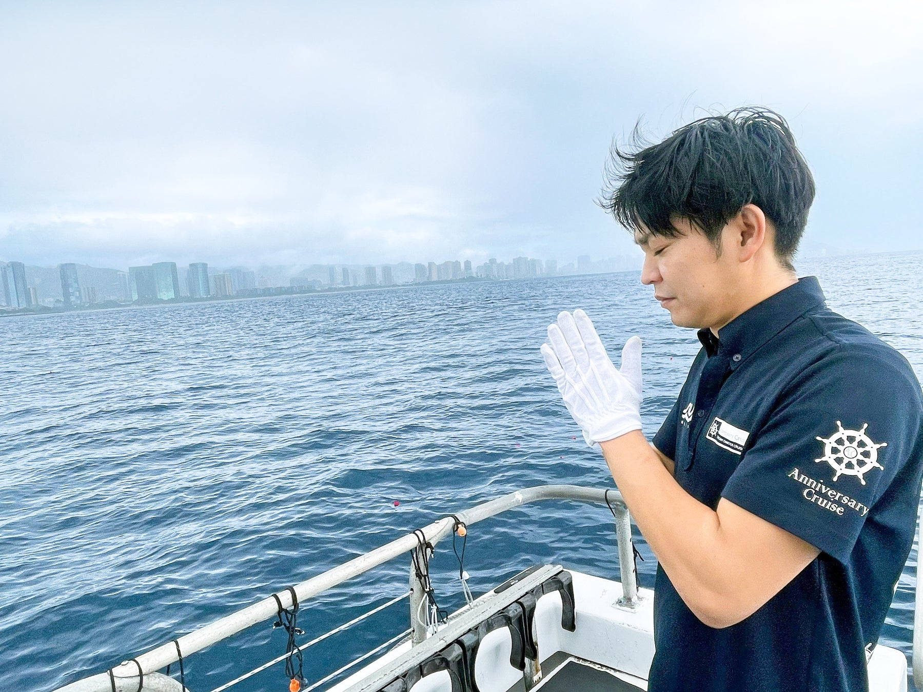 散骨時に計測した緯度経度を記載した散骨証明書と、撮影した写真は後日、遺族へ送られる。日本からハワイの海に向かって手を合わせたり、いつの日か遺族や親せき、友人がハワイに訪れた際に、周忌法要でチャーター船に乗り込み、同じポイントに向かって手を合わせることもできる。