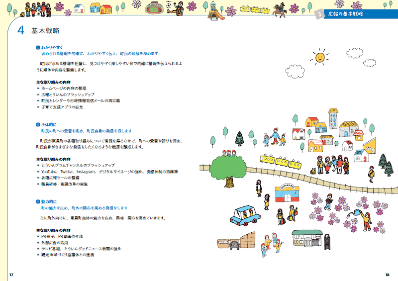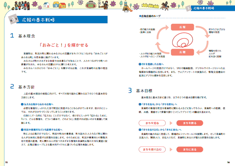 東員町では、一人ひとりの活躍がこれからの東員町を創る「おみごと!があふれる町へ」を総合計画の基本構想に掲げ、様々な場面で町の構成員の活躍が溢れるビジョンを描いてきましたが、このたび、地方創生を達成していくために求められる“時代に沿った新たな広報”へのアクションとして、社会的・経済的価値を高めるための広報戦略を策定する事業を実施しました。