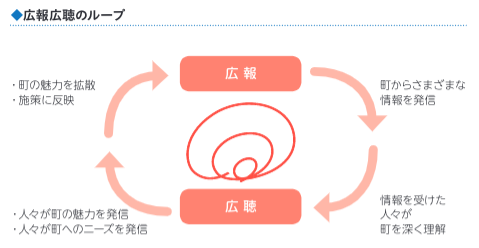 町による広報だけではなく、町民や町内の事業者、町を訪れた人たちなど町に関わる人が主体的に発信する状態を目指します。そのためには、町民や事業所との情報共有や発信の連携、町に関わる人が持つさまざまな情報を東員町広報の大切な資産と捉えて、広報広聴ループによる基本的サイクルに基づいた広報を実施します。