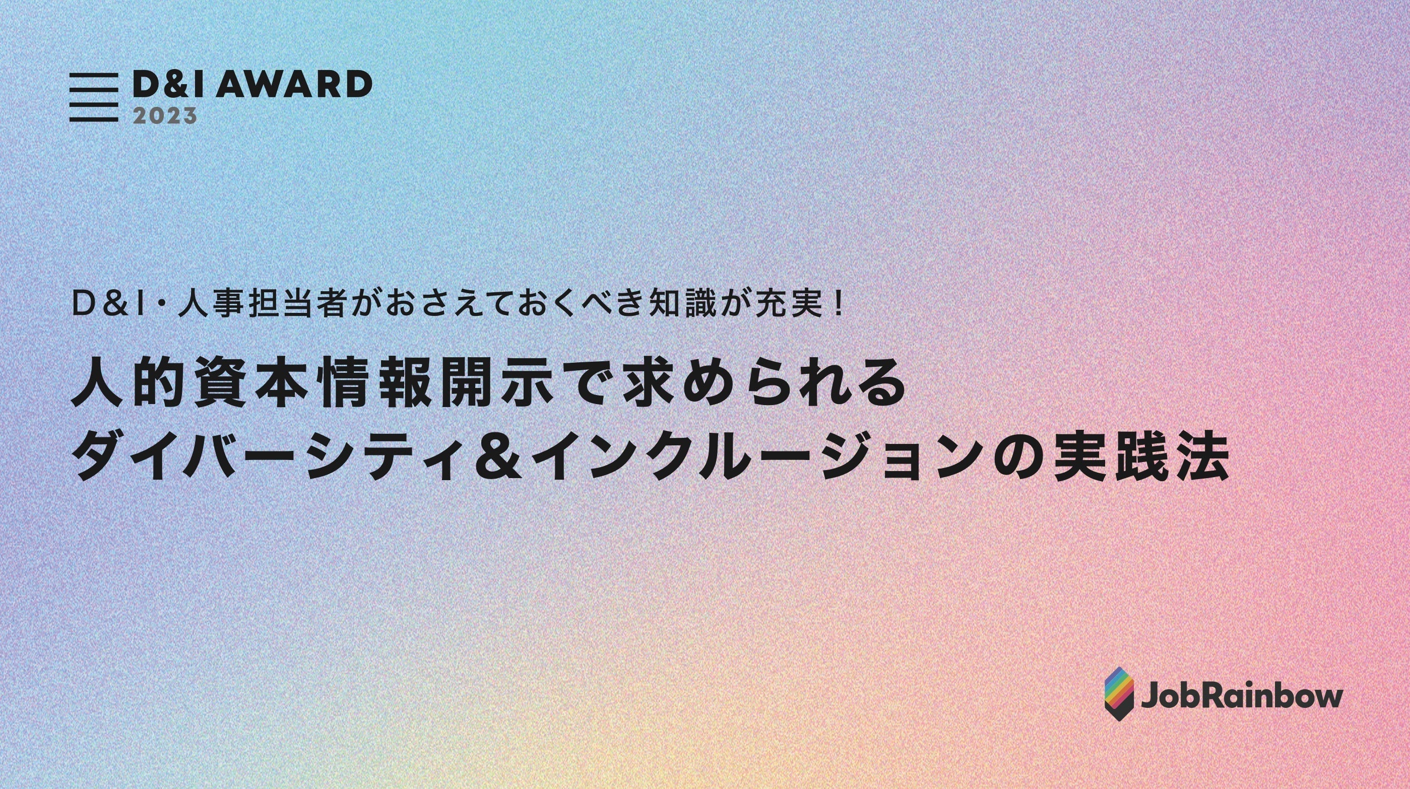そこで今回、JobRainbowが様々な企業のD&I推進に伴走してきた経験をもとに、企業に求められるこれからのD&I推進についてまとめた「人的資本情報開示で求められるダイバーシティ&インクルージョンの実践法」レポートを作成。