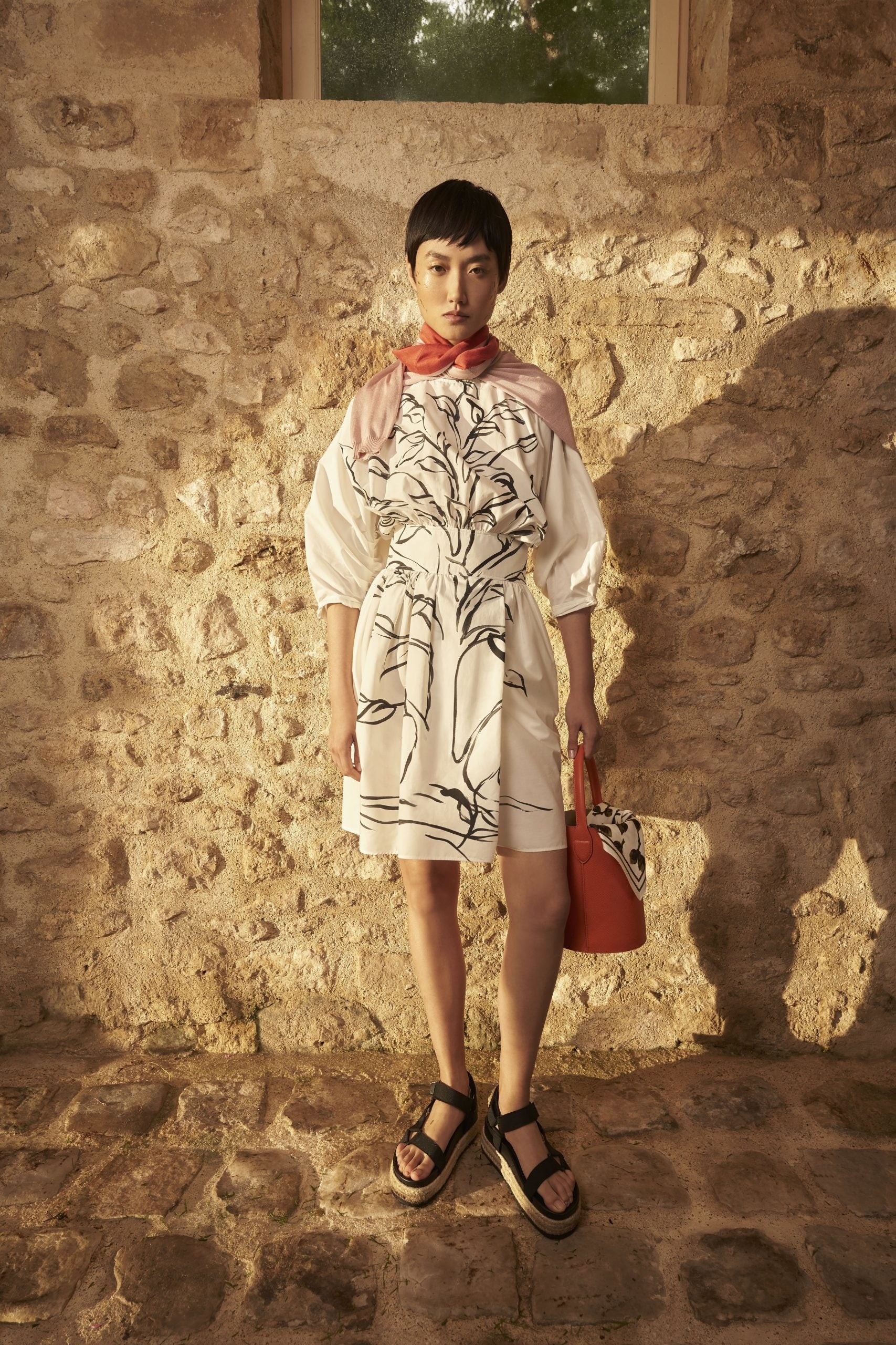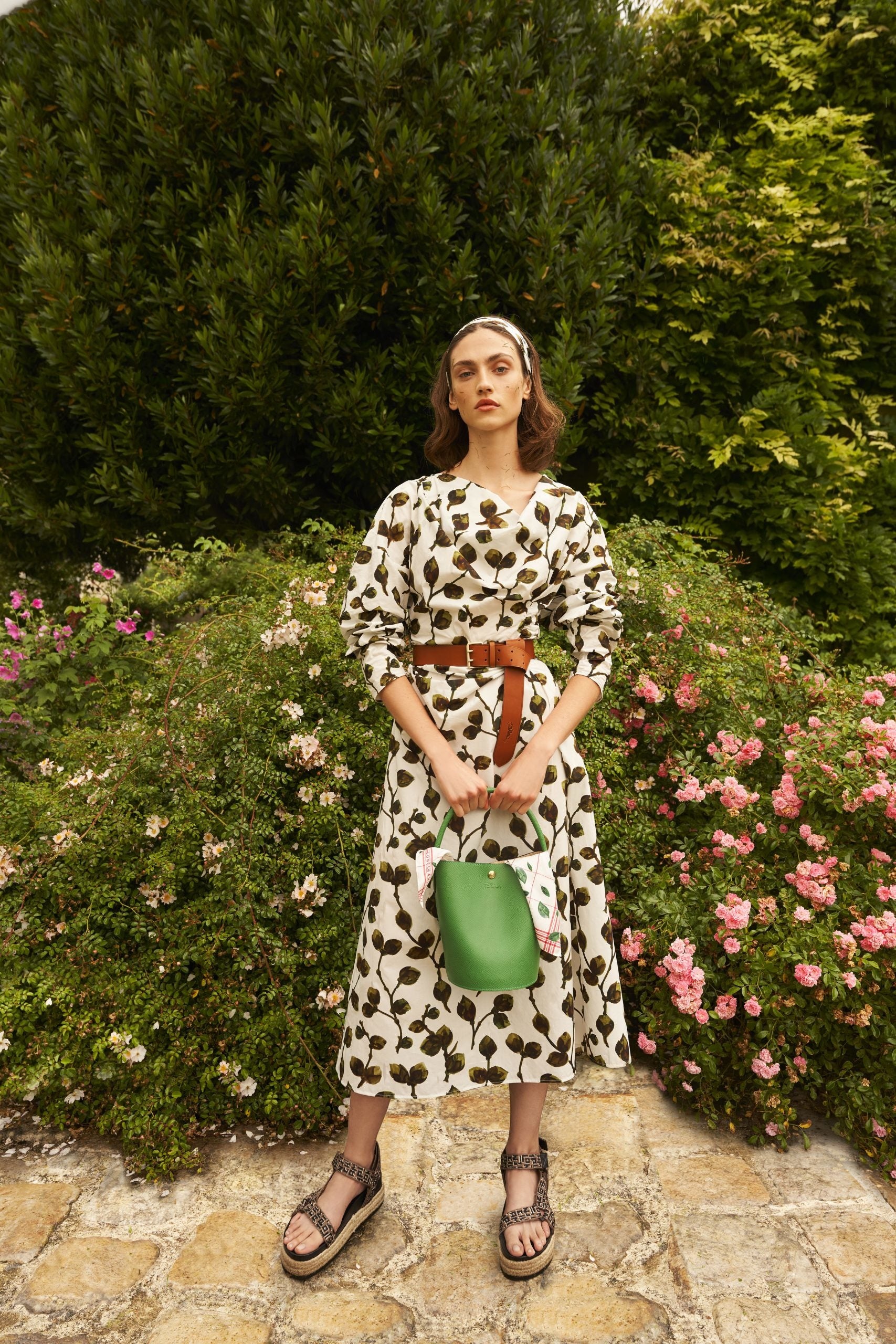 そして「キュイール ドゥ ルシー」と並び、春夏の装いを彩る新作シューズも登場いたします。風にたなびくロングドレスからパリっとした質感のスカート、バミューダ、そしてショートパンツまで、「パリ – プロヴァンス」の様々なルックにマッチしていたクロッグは、クラシックなデザインにさりげなくモダンなツイストを効かせたシューズです。細かなスティッチが施されたローファー風のアッパー部分には、小さなゴールドの“ロンシャン・ホース”がアクセントを添えており、レザーとのコントラストを演出するかのように、アッパー部分とシンプルな木製のソール部分は連なったゴールドの金具で留められています。