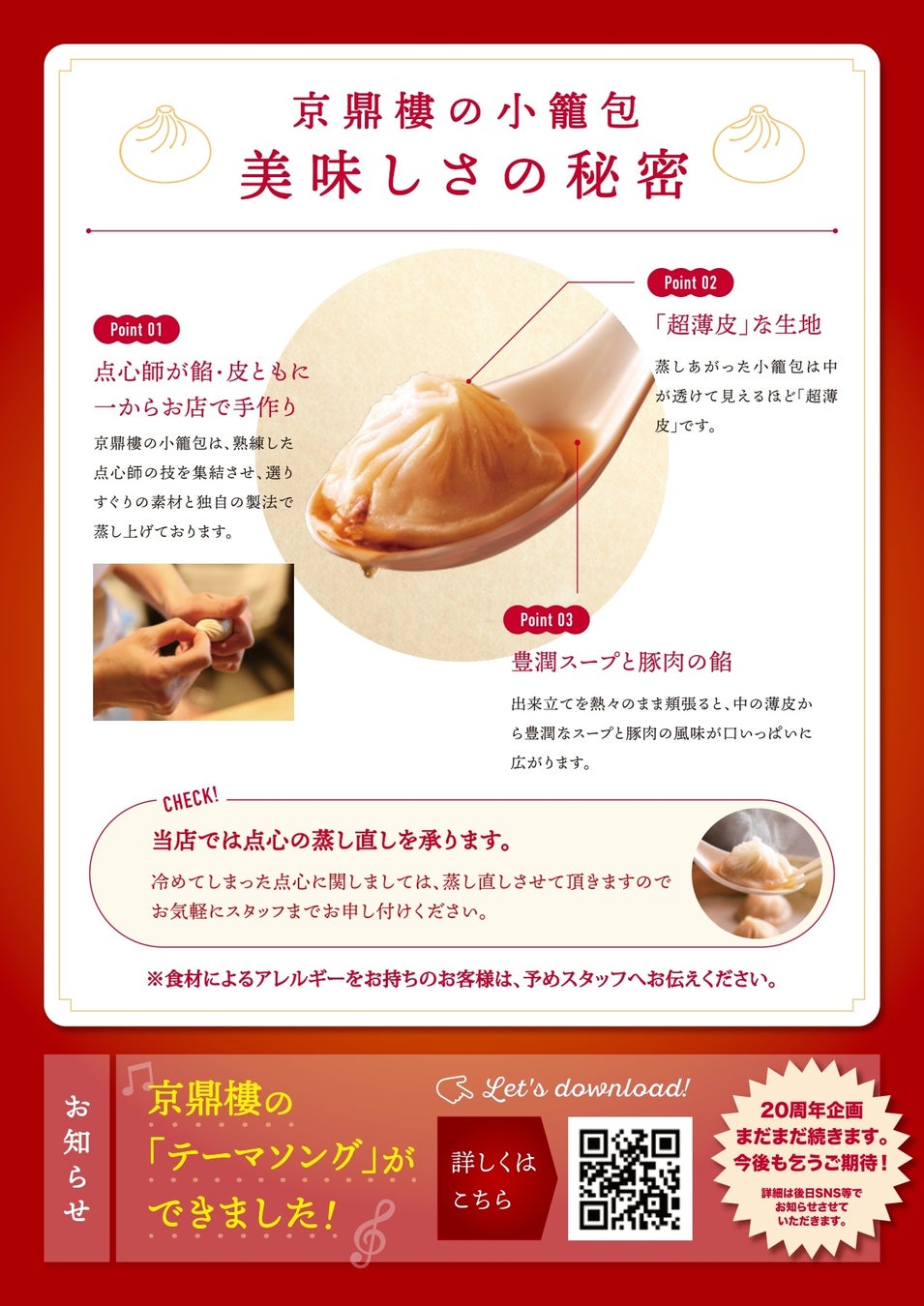 ぜひこの機会に、京鼎樓の小籠包をお楽しみください。